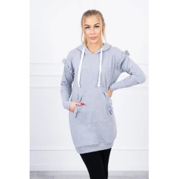 Šaty s ozdobnými volánikmi a kapucňou šedej farby