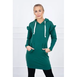 Šaty s ozdobnými volánikmi a kapucňou zelenej farby