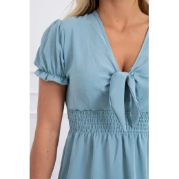 Šaty s viazaným výstrihom do V morsky modrej