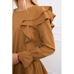 Šaty s vertikálnymi volánikmi camel
