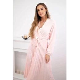Šaty s viazaným plisovaným lemom púdrovo ružové