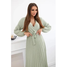 Šaty s viazaným plisovaným lemom svetlej khaki farby