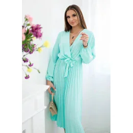 Šaty s viazaným plisovaným lemom svetlej mentolovej farby