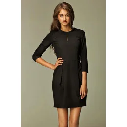 Dámske pletené šaty s dlhými rukávmi a asymetrickým výstrihom ZS3039 34956 black - Kesi