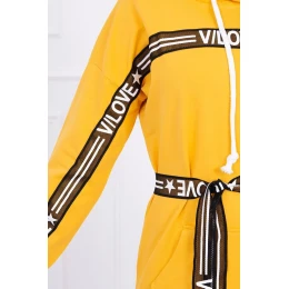 Predstavujeme vám pohodlné šaty. Šaty majú ozdobnú stuhu s nápismi. Šaty s kapucňou a predným vreckom. Šaty sú vyrobené z vysoko kvalitného materiálu. Veľkosť je univerzálna a vyhovuje dámam, ktoré nosia veľkosť M, L alebo XL.
