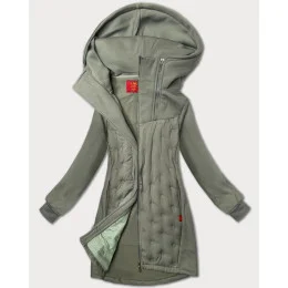 Šedo-zelená dlhá dámska mikina so stojačikom a kapucňou LHD (AMG-178)