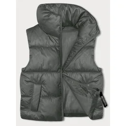 Šedo-zelená krátka vesta so stojačikom (B8245-70)