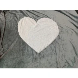 Sivá semišová deka s veľkým bielym srdcom našitým uprostred.