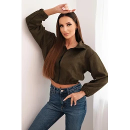 Semišová mikina na zips khaki