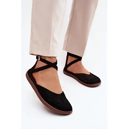 Semišové dámské baleríny Barefoot s mašličkami Zazoo 320 Černé
