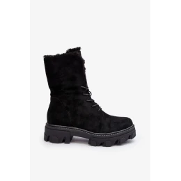 Semišové šněrovací pracovní kotníkové boty s kožíškem, černé Frendo