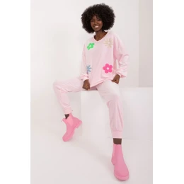 Velurová souprava, která se skládá z mikiny a kalhot, je kombinací elegance a pohodlí, ideální pro neformální chvíle odpočinku. Tato souprava, vytvořená s ohledem na pohodlí při nošení a módní vzhled, jistě upoutá pozornost svým jedinečným designem. Převažujícím materiálem je měkký polyester, který v kombinaci s velurovou úpravou poskytuje příjemný pocit na kůži. Soupravu zdobí na přední straně potisk květin, který jí dodává svěží a romantický nádech, ideální pro letní večery. Díky standardní délce halenky a kalhot je souprava praktická a univerzální. Stylizované žebrování na nohavicích kalhot dodává moderní, sportovní vzhled a zároveň umožňuje volnost pohybu. Kalhoty s vysokým pasem zvýrazňují pas, zatímco boční nakládané kapsy na kalhotách jsou praktické a stylové zároveň. Mikina s dlouhými rukávy a kulatým výstřihem je pohodlná a vhodná pro každodenní nošení. Celek vytváří harmonický obraz, v němž se
