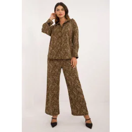 Dámska súprava s módnym zvieracím motívom, ktorá sa skladá z košele a nohavíc, vyrobená z kombinácie polyesteru a elastanu. Košeľa má dlhé rukávy a zapína sa na gombíky, čo jej dodáva klasický charakter. Okrem toho je vybavená golierom, ktorý podčiarkuje elegantný vzhľad. Nohavice sú dlhé, so širokými nohavicami, ktoré zabezpečujú pohodlie a voľnosť pohybu. Vysoký pás nohavíc krásne zvýrazňuje postavu a dodáva celkovému vzhľadu jemnosť. Táto súprava je ideálnou voľbou pre ženy, ktoré ocenia módu, pohodlie a trochu dravého štýlu na každý deň.