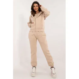 Dámska tepláková súprava ideálna na každodenné ležérne a športové nosenie, vyrobená zo zmesi bavlny a elastanu. Súprava pozostáva z trička s krátkymi ramienkami, mikiny na zips s kapucňou, dlhými rukávmi a vreckami s nášivkami a nohavíc s dlhými nohavicami a rebrovanými manžetami. Nohavice majú vysoký úplet a bočné vrecká pre väčšie pohodlie. Na zadnej strane nohavíc na úrovni zadku je jemná potlač. Celkový dizajn je zachovaný v melanžovom vzore a dodatočné zateplenie poskytuje pohodlie počas chladnejších dní. Ide o pohodlnú a štýlovú voľbu na každodenné nosenie.....