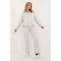 Dámská ležérní mikinová souprava, ideální pro každodenní vycházky, se skládá z mikiny a kalhot. Souprava je vyrobena z vysoce kvalitní směsi bavlny a polyesteru a poskytuje pohodlí a odolnost, zatímco jednobarevný vzor jí dodává univerzálnost. Mikina má dlouhé rukávy, kulatý výstřih a praktické kapsy s nášivkami na přední straně pro sportovní styl. Na přední straně je módní nápis, který upoutá pozornost a dodá celkovému vzhledu originalitu. Dlouhá délka mikiny z ní dělá pohodlný kousek šatníku, ideální pro kombinování s různými spodními díly. Kalhoty mají rovný střih nohavic a vysoký náplet, který zvýrazňuje siluetu a poskytuje pohodlí. V pase je vázačka pro individuální přizpůsobení a praktickým prvkem jsou postranní kapsy, ideální pro uložení drobností. Tento komplet je dokonalou kombinací stylu a pohodlí, skvělou volbou pro každodenní nošení.