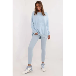 Dámska súprava pozostávajúca z legín a mikiny, ktorá je ideálna na každodenný ležérny štýl. Je vyrobená z kvalitnej bavlny s prídavkom elastanu, čo zaručuje pohodlné nosenie a priliehavý strih. Legíny so zúženými nohavicami, rebrovaným materiálom a vysokým pásom zvýrazňujú postavu a zároveň poskytujú pohodlie a voľnosť pohybu. Mikina s dlhými rukávmi a okrúhlym výstrihom má na prednej strane vyrazený obrázok, ktorý súprave dodáva originálny nádych. Hladký vzor dominuje celej súprave, vďaka čomu je univerzálnou voľbou na každú každodennú príležitosť.