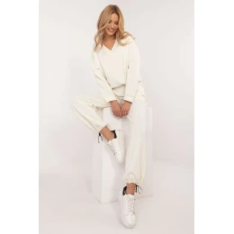 Táto ležérna súprava pozostáva z mikiny a nohavíc a je dokonalou kombináciou pohodlia a módneho vzhľadu. Je vyrobená z kvalitnej zmesi bavlny, viskózy, elastanu a polyesteru, čo zaručuje pohodlie a odolnosť. Vďaka hladkému vzoru a klasickému strihu je táto súprava skvelým doplnkom každodenného outfitu. Mikina s dlhými rukávmi a výstrihom do V dodáva jemný charakter a zároveň zaručuje pohodlie. Nohavice s vysokým pásom a zúženými nohavicami ukončenými lemami zvýrazňujú postavu a bočné vrecká sú praktickým doplnkom. Táto súprava je ideálna na oddych doma, prechádzku alebo bežné výlety s priateľmi. Spojte ju so svojimi obľúbenými teniskami a vytvorte štýlový a pohodlný outfit na každú príležitosť!