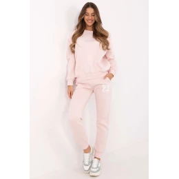 Dámský teplý komplet je kombinací stylu a pohodlí, ideální pro každodenní nošení. Skládá se z mikiny a kalhot vyrobených z kombinace bavlny a polyesteru, co zajišťuje pohodlí a odolnost materiálu. Model se vyznačuje ležérním stylem, co ho činí skvělou volbou pro každodenní situace, jako jsou procházky, nákupy nebo setkání s přáteli. Mikina má dlouhé rukávy s manžetami a kulatý výstřih, co jí dodává klasický, ale zároveň stylový vzhled. Jako další akcenty jsou vyšité vzory a nášivky, které zdůrazňují jedinečný charakter kompletu. Mikina je tepelně izolovaná, co ji činí ideální volbou na chladnější dny. Kalhoty mají vysoký pas a přímé nohavice s manžetami, co zajišťuje ideální přizpůsobení a pohodlí při nošení. Mají boční kapsy, které jsou praktickým doplňkem pro uložení drobností. Celkový design je charakterizován souvislým, moderním designem s dominujícím vyšíváním, což činí komplet jak funkčním, tak m