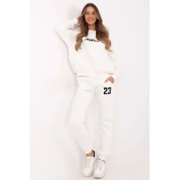 Dámský teplý komplet je spojením stylu a pohodlí, ideální pro každodenní nošení. Skládá se z mikiny a kalhot vyrobených z kombinace bavlny a polyesteru, co zaručuje pohodlí a odolnost materiálu. Model se vyznačuje ležérním stylem, díky čemuž se skvěle hodí do každodenních situací, jako jsou procházky, nákupy nebo setkání s přáteli. Mikina má dlouhé rukávy s pružným lemem a kruhový výstřih, co jí dodává klasický, ale zároveň stylový vzhled. Dalším akcentem jsou vyšívané vzory a nášivky, které zdůrazňují unikátní charakter kompletního setu. Mikina je podšitá, co ji činí ideální volbou pro chladnější dny. Kalhoty mají vysoký pas a přímé nohavice s pružnými lemy, co zajišťuje perfektní přizpůsobení a pohodlí nošení. Mají boční kapsy, které jsou praktickým doplňkem pro uložení drobností. Celkový vzhled je charakterizován souvislým, moderním designem s dominujícím vyšíváním, což z něj činí jak funkční,