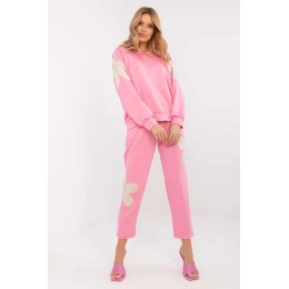 Táto dámska tepláková súprava je ideálnou kombináciou pohodlia a štýlu. Skladá sa z mikiny a nohavíc vyrobených z mäkkej a príjemnej zmesi viskózy, bavlny a elastanu, ktorá zaručuje pohodlie počas celého dňa. Mikina má klasický okrúhly výstrih a dlhé rukávy, jej výnimočnosť podčiarkujú vsadky v tvare kvetov zdobené drobnými zirkónmi, ktoré jej dodávajú jemný lesk. Nohavice, tiež s vsadkami, majú rovné nohavice a vysoký pás s nastaviteľnou šnúrkou, vďaka čomu sa dokonale prispôsobia postave. Praktické bočné vrecká zaručujú pohodlie a funkčnosť. Táto súprava je ideálna na každodenné nosenie, na ležérne štylizácie, pri ktorých chcete byť pohodlná a štýlová.