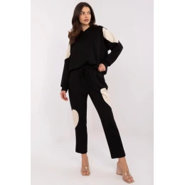 Dámský teplý set je ideální kombinací pohodlí a stylu na každý den. Skládá se z mikiny s kapucí a kalhot s vysokým pasem, které se skvěle přizpůsobí postavě. V pasu je praktické šňůrování, které umožňuje nastavení obvodu. S jak mikina, tak kalhoty mají jednoduchý, minimalistický střih, který se hodí do každodenních stylizací. Dlouhé nohavice a rukávy zajišťují pohodlí při nošení a boční kapsy přidávají funkčnost. Materiál z polyesteru, bavlny a elastanu je měkký, příjemný na dotek a dobře padne na tělo. Hladký vzor oživují jemné srdcové nášivky umístěné na rukávech a nohavicích, dávají celku výjimečný charakter. Je to skvělá volba pro každodenní aktivity, relaxaci doma nebo pro procházku.