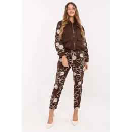 Štýlová a pohodlná dámska tepláková súprava pozostávajúca z mikiny na zips a nohavíc s opaskom. Je vyrobená z vysokokvalitnej zmesi viskózy a polyesteru a poskytuje mäkkosť, pružnosť a pohodlie počas celého dňa. Mikina má ležérny strih s golierom, dlhými rukávmi a nápletovými vreckami vpredu, čo jej dodáva charakter a praktickosť. Nohavice majú vysoký pás, zúžené nohavice a bočné vrecká, ktoré poskytujú pohodlie a moderný vzhľad. Celé oblečenie je doplnené ozdobnou výšivkou umiestnenou na rukávoch mikiny a prednej časti nohavíc, ktorá súprave dodáva výnimočný, štýlový charakter. Táto ležérna súprava je ideálnou voľbou na každodenné oblečenie, v ktorej sa spája pohodlie, moderný dizajn a ženské detaily.