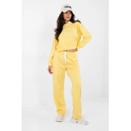 Kompletná športová súprava pozostávajúca z mikiny a nohavíc má pohodlný dizajn na každodenný ležérny štýl. Mikina je kratšia ako štandardná mikina s dlhým rukávom a golierom, čo jej dodáva celkový moderný charakter, a vyšívaný nápis na prednej strane je módnym ozdobným akcentom. Nohavice s dlhými rovnými nohavicami a vysokým pásom zabezpečujú pohodlie pri nosení a voľnosť pohybu. V páse sa používa šnurovanie, ktoré umožňuje individuálne nastavenie, a bočné vrecká zvyšujú funkčnosť modelu. Súprava je vyrobená z kombinácie polyesteru, elastanu a viskózy, vďaka čomu je mäkká, pružná a pohodlná na nosenie. Je ideálnou voľbou na každý deň, na relax doma aj na bežné výlety.