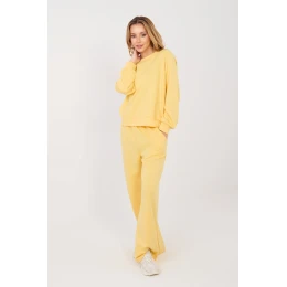 Táto dámska tepláková súprava z mimoriadne mäkkého maslového materiálu je ideálnou kombináciou pohodlia a štýlu na každodenné nosenie. Tkanina vyrobená zo zmesi viskózy, polyesteru a elastanu je veľmi mäkká, pružná a príjemná na dotyk, vďaka čomu je táto súprava ideálna na doma aj do mesta. Súprava sa skladá z voľného, ležérneho topu a nohavíc s vysokým pásom, v ktorých elastická šnúrka zaručuje dokonalé prispôsobenie sa postave. Široké nohavice dodávajú celej súprave ľahký a moderný vzhľad a bočné vrecká zdôrazňujú praktický charakter súpravy.