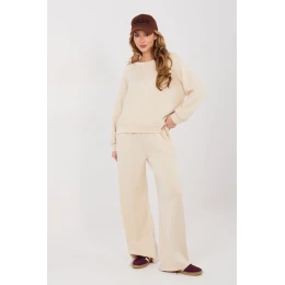 Dámska súprava pozostáva z mäkkého, maslového materiálu, ktorý je ideálnou kombináciou pohodlia a štýlu na každodenné nosenie. Tkanina z viskózy, polyesteru a elastanu je mimoriadne mäkká, pružná a príjemná na dotyk, vďaka čomu sa súprava skvele hodí na doma aj do mesta. Súprava pozostáva z voľného, ležérneho topu a nohavíc s vysokým pásom a elastickým pásom, ktorý zaručuje ideálne prispôsobenie. Široké nohavice dodávajú súprave ľahký a moderný vzhľad a bočné vrecká zdôrazňujú praktický charakter súpravy.