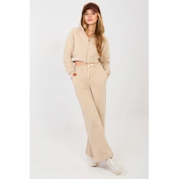 Kompletní teplákový set skládající se z mikiny a kalhot je ideální volbou pro ty, kteří ocení pohodlí a módní, ležérní styl na každý den. Hladký vzor dodává celku univerzální charakter, díky čemu se set skvěle hodí jak při každodenních aktivitách, procházkách, tak i doma. Mikina s dlouhým rukávem je vybavena praktickou kapucí a pohodlným zipem, co umožňuje rychlé oblékání a regulaci teplotního komfortu. Jemné vyšívaní umístěné na úrovni hrudníku vlevo dodává celku stylový, výrazný akcent. Kalhoty mají dlouhé, široké nohavice, které zajistí volnost pohybu a zapadají do aktuálních trendů. Vysoký pas zdůrazňuje pas, šněrování zaručuje pohodlné přizpůsobení a boční kapsy zvyšují funkčnost modelu. Další vyšívaní na kalhotách vytváří souvislý, estetický detail s mikinou. Set je vyroben z vysoce kvalitní směsi bavlny a polyesteru, díky čemu spojuje měkkost, prodyšnost a trvanlivost. Jedná se o pohodlný a stylový