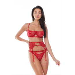 Predstavujeme vám mimoriadne zvodnú súpravu spodnej bielizne, vďaka ktorej sa budete cítiť mimoriadne zvodne a sebavedomo. Táto súprava je vyrobená z najlepších materiálov a predstavuje kvintesenciu elegancie a zmyselnosti. Mäkká a príjemná na dotyk podprsenka so zapínaním na chrbte je dokonalou podporou pre vaše pôvaby. Podprsenka s kosticami dodáva stabilitu, zatiaľ čo nastaviteľný obvod zaručuje dokonalé prispôsobenie sa vašej postave a zvýrazňuje vaše prednosti. Tanga nohavičky zdobené elegantnou čipkou sú nielen mimoriadne sexy, ale aj pohodlné na nosenie. Ich strih dokonale vytvaruje vaše krivky, zatiaľ čo ozdobná zadná časť v podobe remienka dodáva celku jedinečný šarm. Neodnímateľné ramienka a nastaviteľné podväzkové pásy vám dávajú možnosť prispôsobiť sa vašim potrebám. Táto súprava spodnej bielizne zabalená v štýlovej krabičke je nielen dokonalým spôsobom, ako zdôrazniť svoju ženskosť, ale aj perfektným darčekom pre milovanú osobu. Vyrába sa v Poľsku a zaručuje najvyššiu kvalitu spracovania a pozornosť venovanú každému detailu. Vnútri nohavičiek nájdete bavlnenú vložku, ktorá poskytuje dodatočné pohodlie a hygienu, a podväzkový pás, zapínaný na háčiky a očká, dodáva celku jedinečný šarm. Nechajte svoju pokožku dýchať a cíťte sa výnimočne v tejto exkluzívnej súprave, ktorá spája eleganciu, pohodlie a mimoriadnu zmyselnosť.