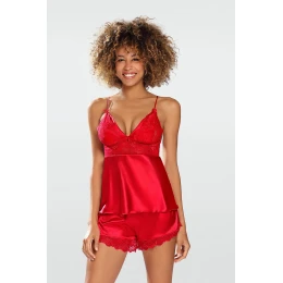 Krásna sada Harmónia bola vytvorená s ohľadom na výnimočné ženy. Je ideálny pre každú zvláštnu príležitosť, najmä pre romantický večer s partnerom. Súprava Harmónia je vyrobená z krásnej saténovej látky. Skladá sa z blúzky a šortiek, ktoré dokonale zdôrazňujú postavu a tvary. Horná časť blúzky je vyrobená z kvetinovej čipky, zatiaľ čo spodná časť blúzky je mierne voľná, takže sa budete cítiť dokonale pohodlne! Blúzka má tiež tenké ramienka, ktoré je možné nastaviť. Krátke šortky so saténovým lemovaním a čipkou v spodnej časti nohavíc vám dodajú pocit luxusu a jemnosti. Doprajte si krásnu súpravu HARMONIA, ktorá vám poskytne všetko, čo potrebujete.