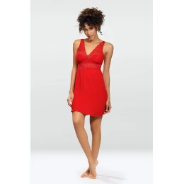 Krásna a neuveriteľne ženská nočná košeľa od Dkaren je rozhodne ponukou pre každú ženu. Je to ideálny model pre spánok aj pre zmyselnú noc s partnerom. Bol vyrobený z mäkkého viskózového úpletu, ktorý je neuveriteľne príjemný pre postavu. Horný diel je zakončený kvetinovou čipkou. Zadný diel košieľky je zdobený výrezom v tvare písmena V.