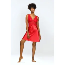 Slip Neema má bohato zdobený horný diel. Korzetový strih z čipky v kombinácii so saténovou spodnou časťou. Je veľmi ženský a zmyselný. Saténová krajková nočná košieľka je ideálnou voľbou pre romantickú noc s partnerom. Čipka dodáva košieľke zmyselnosť a sexy vzhľad, zatiaľ čo satén je jemný a príjemný na dotyk.