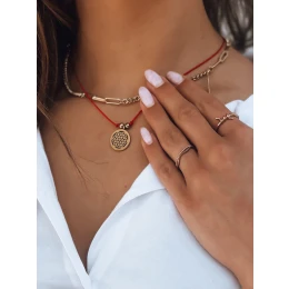 Náhrdelník SIESTA je dizajn, ktorý bude vyzerať skvele ako doplnok k mnohým stylingom. Červená šnúrka má ozdobný prívesok v zlatej farbe a zapínanie je nastaviteľné.