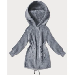 Pokrývka je mäkká a príjemná na dotyk, má kapucňu, dve vrecká a zapína sa na zips a panel s patentkami. Kovové prvky sú striebornej farby. V páse modelu je šnúrka na stiahnutie. Model má dĺžku pod boky.