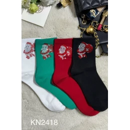 Tieto hladké ponožky so sviatočnou aplikáciou sú skvelou voľbou na zimné dni. Na členku majú trblietavého Santa Clausa, ktorý dodáva veselý a sviatočný nádych. Vďaka použitiu trblietok je aplikácia pútavá a navodzuje sviatočnú náladu. Ponožky sú vyrobené z mäkkého a na dotyk príjemného materiálu, ktorý zaručuje pohodlie pri nosení. Vďaka klasickému hladkému dizajnu sa skvele hodia k rôznym outfitom, zatiaľ čo vianočný stromček im dodáva nádych kúzla a zábavy. Tieto ponožky sú ideálne na rodinné stretnutia alebo zimné večery a určite vám spríjemnia čas čakania na Vianoce.