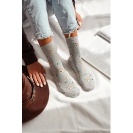 Skarpetki Damskie W Lisy I Liście Szary Melanż