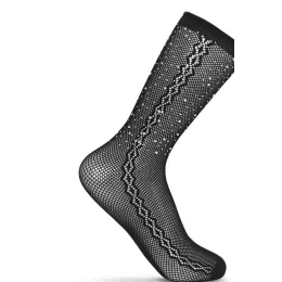 Dámska ponožka so vzorom a ozdobným kamienkovým lemom.
