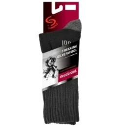 Skarpetki trekkingowe z wełny merynosowej. Skład surowcowy: wełna merynosowa 40%, akryl 40%, PROLEN® Siltex ze srebrem 17%, LYCRA EAN čárové kódy zboží jsou: 5901050401678, 5901050402774, 5901050402675, 5901050401876