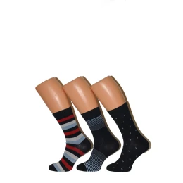 Ponožky majú ploché švy a lem, ktorý pri nosení netlačia. Vytvarované päty sú zárukou pohodlia a komfortu pri nosení. Ponožky sú balené v krabičke po troch pároch s rôznymi vzormi.