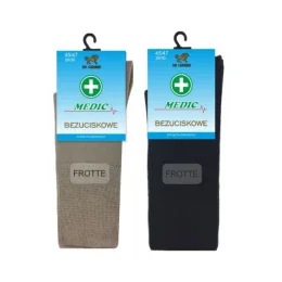 Ponožky MEDIC sú prozdravotným produktom vytvoreným pre diabetikov a ľudí s problémami s krvným obehom. Unikátny elastický lem nespôsobuje tlak, umožňuje voľný krvný obeh a prírodné suroviny použité pri ich výrobe zaručujú pohodlie počas používania.