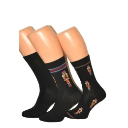 Pôsobivá súprava 3 párov čiernych pánskych ponožiek Cornette z vianočnej edície, ideálna ako darček pod vianočný stromček. Súprava obsahuje jednu hladkú súpravu, druhú a tretiu súpravu zdobenú rebrovaním a vtipným tematickým vzorom. Ploché švy, vysoká kvalita. 74 % bavlna, 23 % polyamid, 3 % elastan.