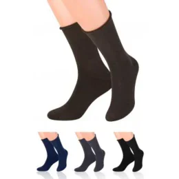 Tieto hladké pánske froté ponožky nemajú sťahovací lem. Model sa vyrába v niekoľkých základných farbách. Ponožky sú pohodlné, mäkké a pri nosení netlačia. Tento model je ideálny na chladné dni.