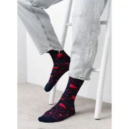 Bavlnené pánske ponožky, ktoré sú ozdobené vzory s valentínsku tematikou.