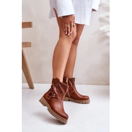 Skórzane Botki Damskie Na Płaskim Obcasie Lewski 3610 Brązowe