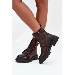 Skórzane Botki Damskie Z Efektem Marszczenia I Klamrą Artiker 57C1007 Czekoladowe