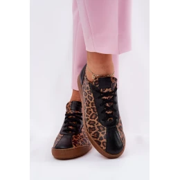 Skórzane Buty Sportowe Damskie W Panterkę Laura Messi 2935 Brązowe