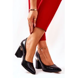 Skórzane Czółenka Lewski Wężowe 3117 Czarne
