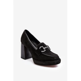 Skórzane Czółenka Na Masywnym Słupku Laura Messi 2706 Czarne